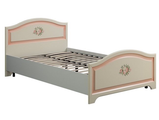 Кровать из серии «Алиса». Выполнена в нежных цветах: белый, крем и розовый. Спинка кровати выполнена из крашеного МДФ и украшена классической фрезеровкой с патиной и рисунком из роз. Кровать комплектуется ортопедическим основанием для сохранения здоровой осанки. Завершить романтичный образ комнаты помогут шкафы, комод, трюмо из этой серии. «Алиса» - личный уголок Франции!
