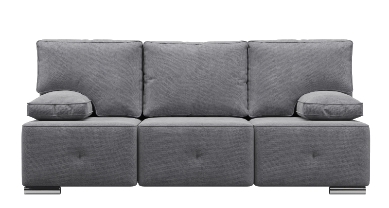 Диван Фанки визуально разделен на три секции. Сочетание однотонной обивки и канта на сидении и подушках, дополненное лаконичными стяжками и хромированными ножками, выглядит незаурядно и стильно.