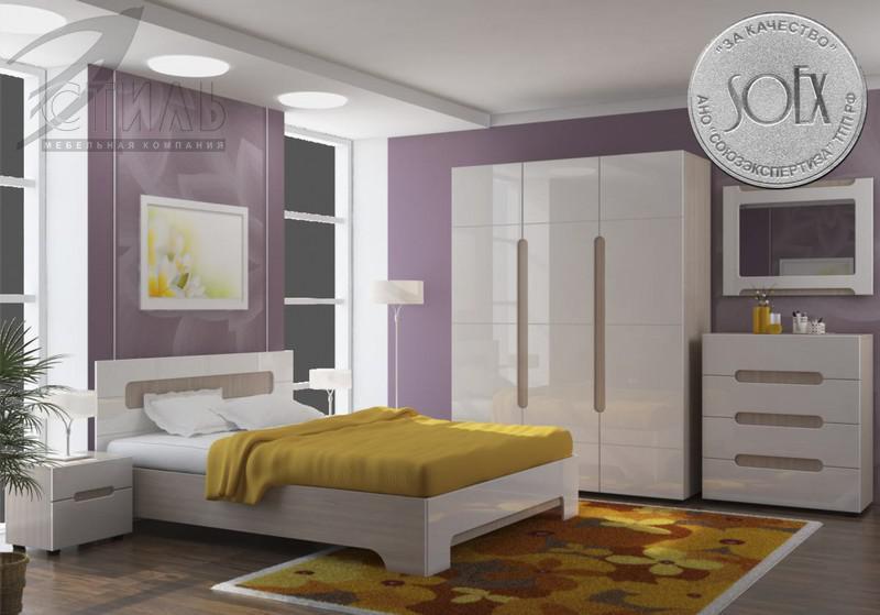 - Глянец пленки ПВХ придает спальному гарнитуру нотки изящества и роскоши.
